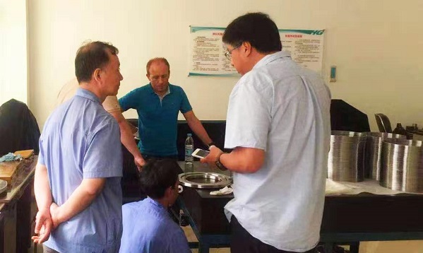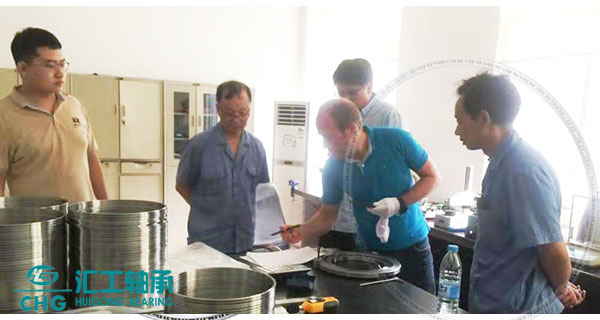 8月12日,來(lái)自德國的客戶(hù)到訪(fǎng)匯工軸承科技有限公司,公司國際貿易部牛經(jīng)理熱情的接待了遠道而來(lái)的客人。此次客戶(hù)來(lái)訪(fǎng)主要為驗收前期訂購的一批薄壁等截面軸承,同時(shí)洽談后期訂購業(yè)務(wù)。公司非常重視此次客戶(hù)來(lái)訪(fǎng)驗收,安排在檢驗計量車(chē)間進(jìn)行檢驗,期間由精密軸承總工程師鄒總工、質(zhì)檢部何部長(cháng)及美國分公司趙總一同參與驗收。完成德國客戶(hù)檢驗標準,順利驗收合格。